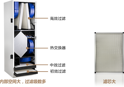 滤芯大,容尘量大,滤芯使用寿命长,不容易堵塞,净化效果强大、持久。