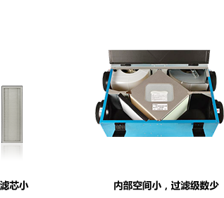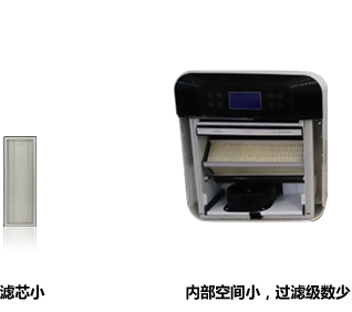 滤芯小、容尘量小,极短时间就被堵死,失去净化效果。